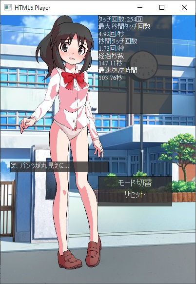 タッチした回数と経過時間、秒間の平均タッチ回数がおまけで表示されます!